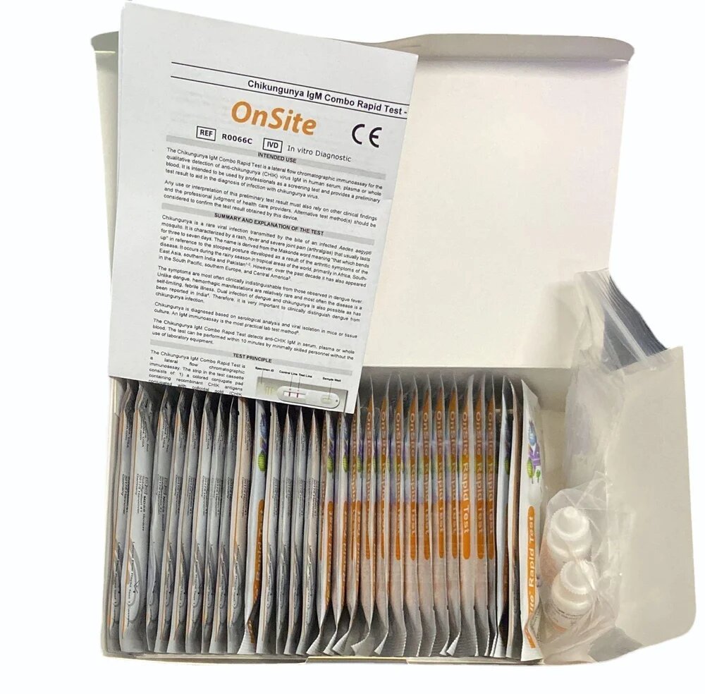 The OnSite Chikungunya IgM Combo Rapid Test is a lateral flow chromatographic immunoassay for the qualitative detection of IgM anti-chikungunya (CHIK) virus in human serum, plasma or whole blood.